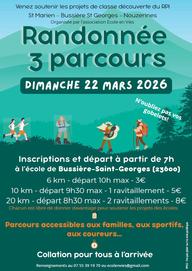 Randonnée de l’école de Bussière-Saint-Georges le 22 mars