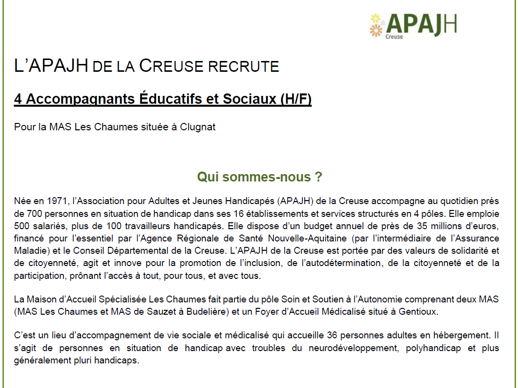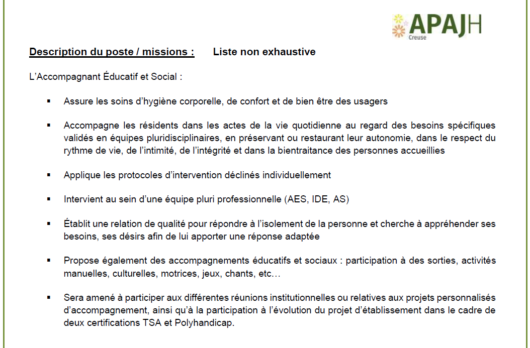 Offre d’emploi : accompagnants éducatifs et sociaux